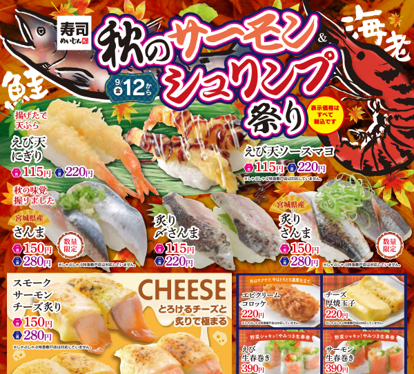 回転寿司では他に類を見ない活魚寿司。高級料亭や海鮮居酒屋でしか食べれない本格的な活魚寿司を生簀からあげ捌きたてを提供しますので、プリプリ、コリコリの食感が存分に楽しめます! 活アジを中心に運が良ければブリにヒラメに真鯛にアワビなど、高級食材の活魚寿司が食べれるかも!?(一部SC店舗を除く)